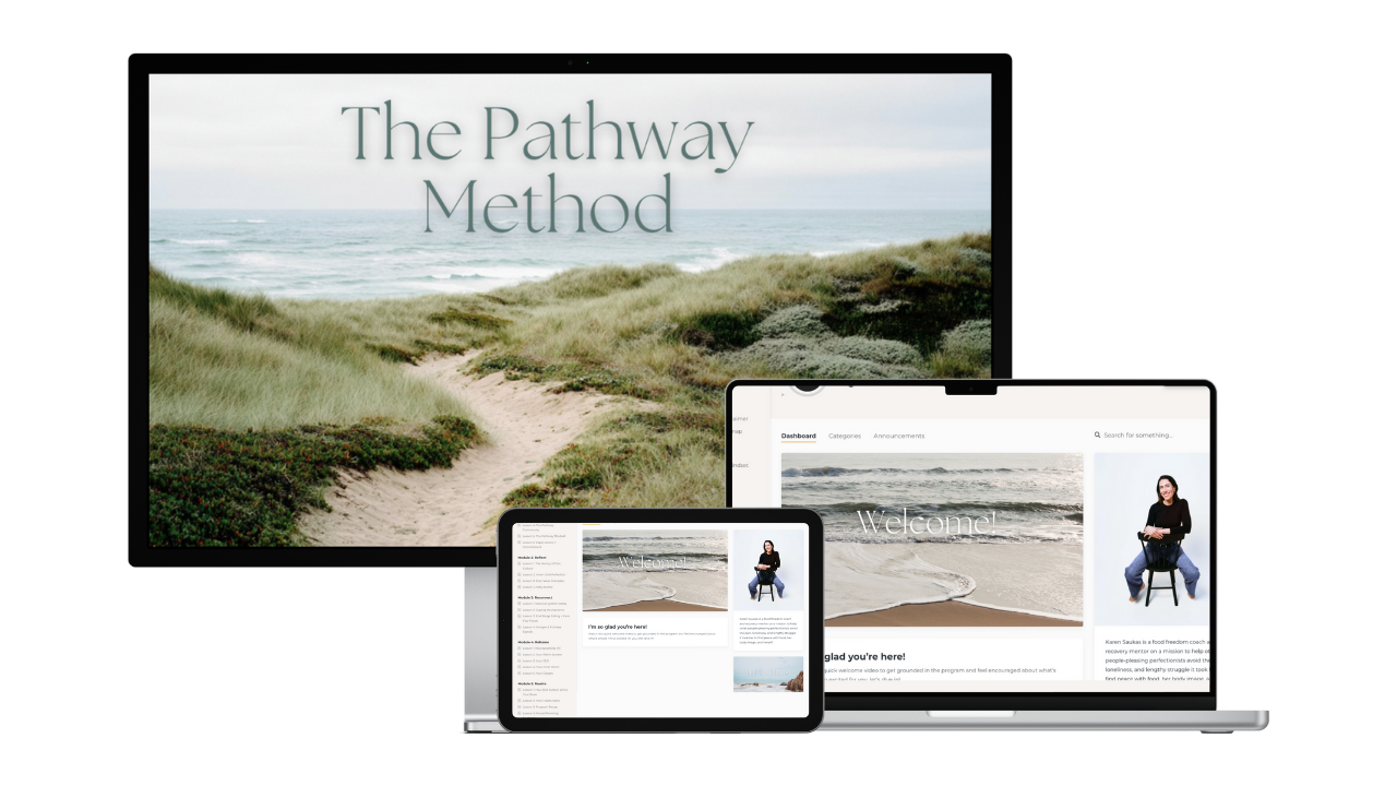 So whether you work with me 1:1 or inside The Pathway Method™, you’re getting the same shame-free, science-backed strategy that’s helped women from different backgrounds go from food-obsessed to food freedom — with proven neuroscience techniques, somatic practices, and step-by-step guidance that heals.